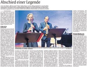 Passend erschien als krönende Zugabe der berühmte Walzer No. 2 aus Schostakowitschs „Suite für Varieté-Orchester“. Mit stehenden Ovationen war das denkwürdige Schauspiel nach etwa zwei Stunden vorbei – und Sabine Meyer wurde zum Ehrenmitglied des Vereins Von Busch Hof Konzertant ernannt.